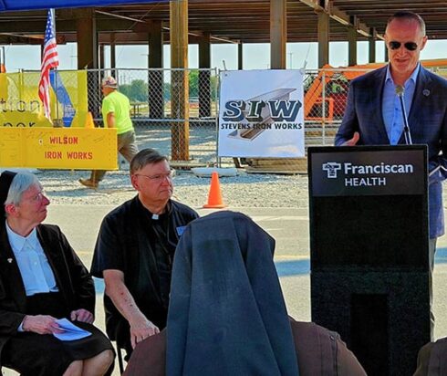 Franciscan Health, Partners Celebrate Final Beam Placement In New Dean and Barbara White Cancer Center